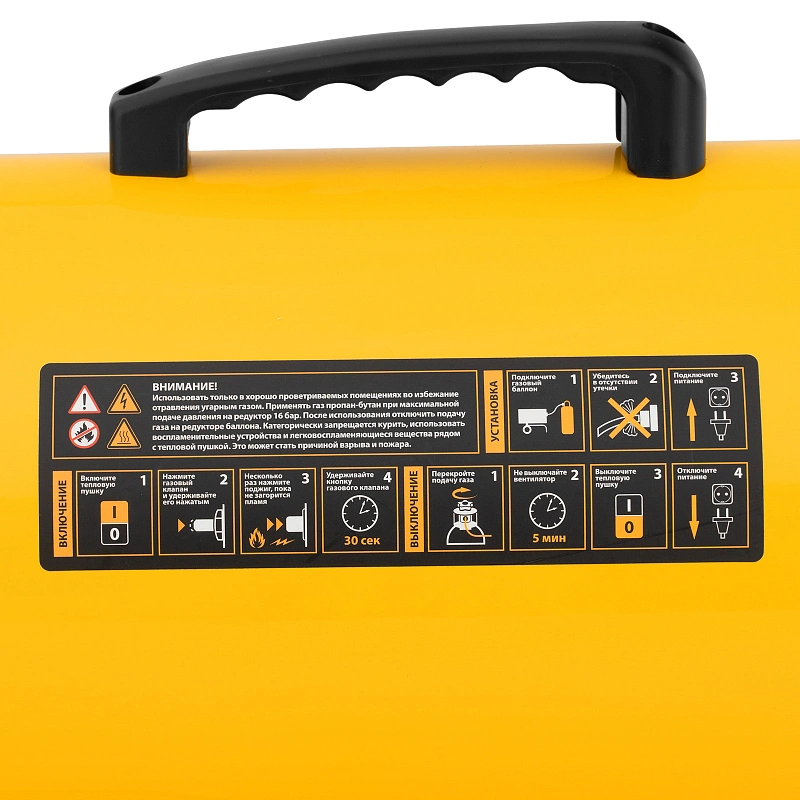 - Быстрый старт — для запуска тепловой пушки предусмотрен пьезоподжиг.
