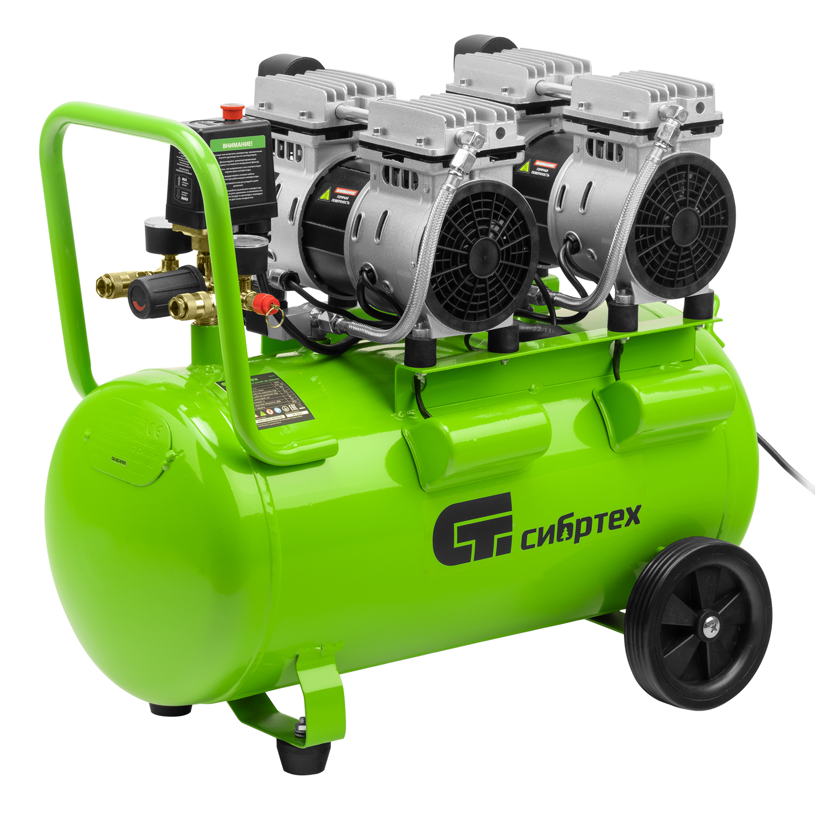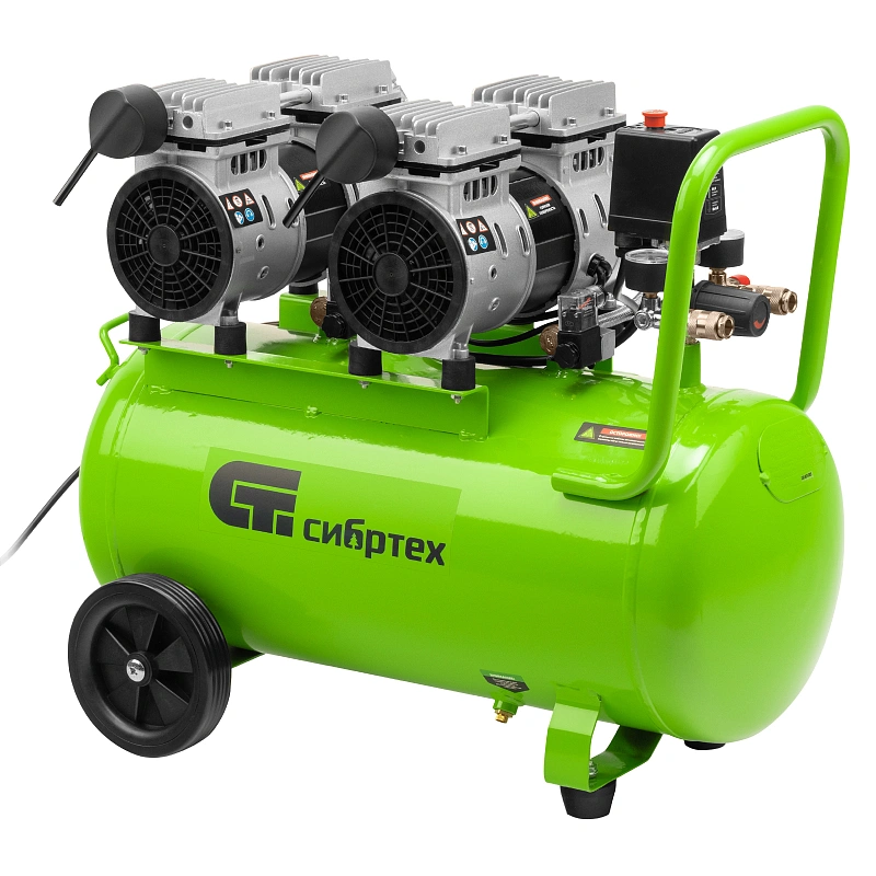 Компрессор безмаслянный малошумный МБ 2000/50, 2000 Вт, 50л, 300 л/мин Сибртех