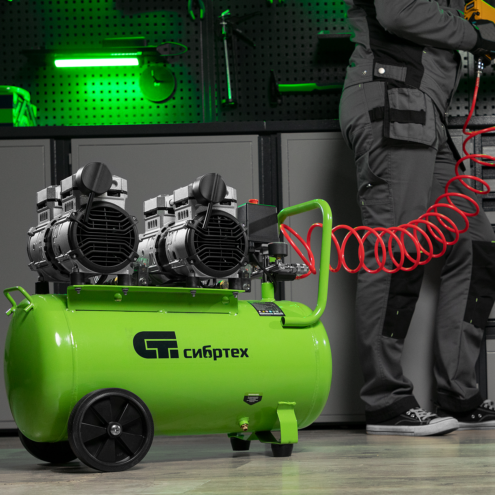 - Простое подключение — выходной быстросъемный коннектор позволяет подсоединить пневмоинструмент одним движением.