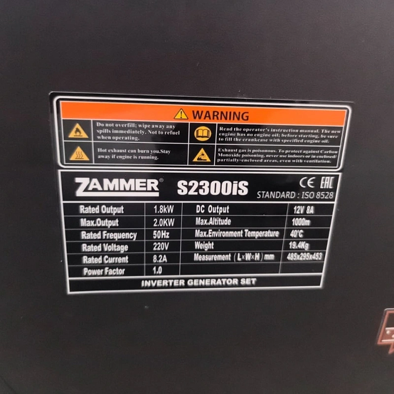 Бензиновый инверторный генератор Zammer S2300iS