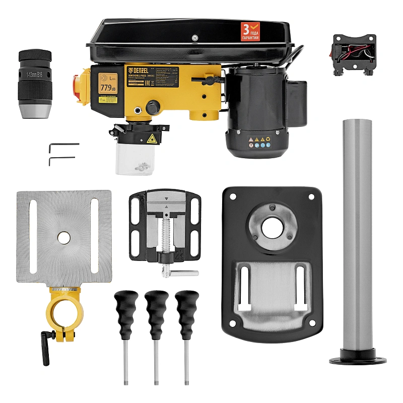 Станок сверлильный DDM-350L, 350 Вт, 13 мм, 5 ск., лазер, настольный Denzel