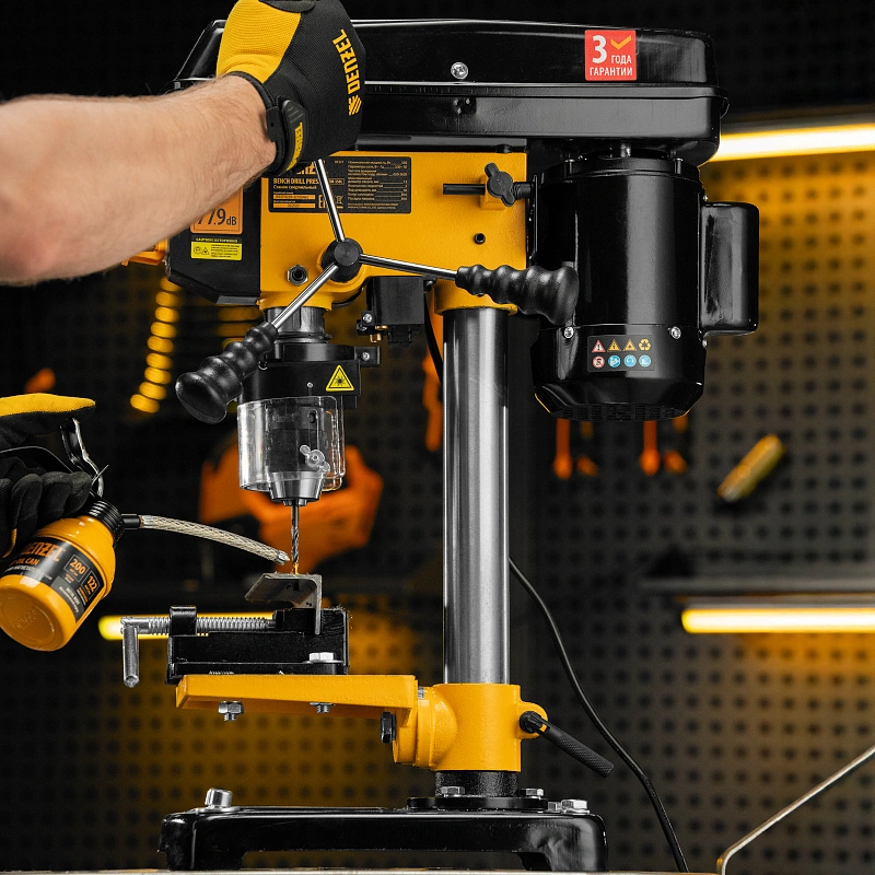 - Безопасность пользователя — прозрачный кожух защищает от вылетающей стружки во время сверления.
