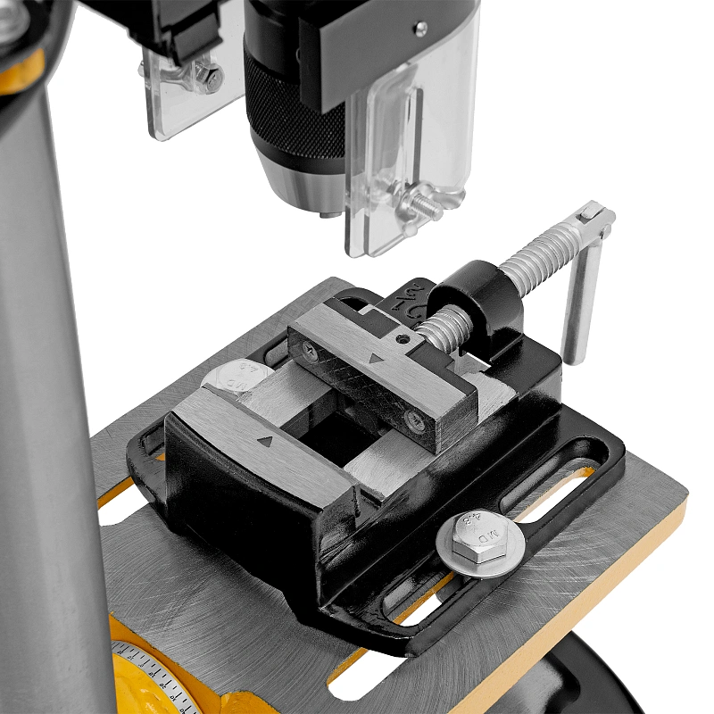 - Надежная фиксация обрабатываемой детали — производитель предусмотрел специальные тиски.