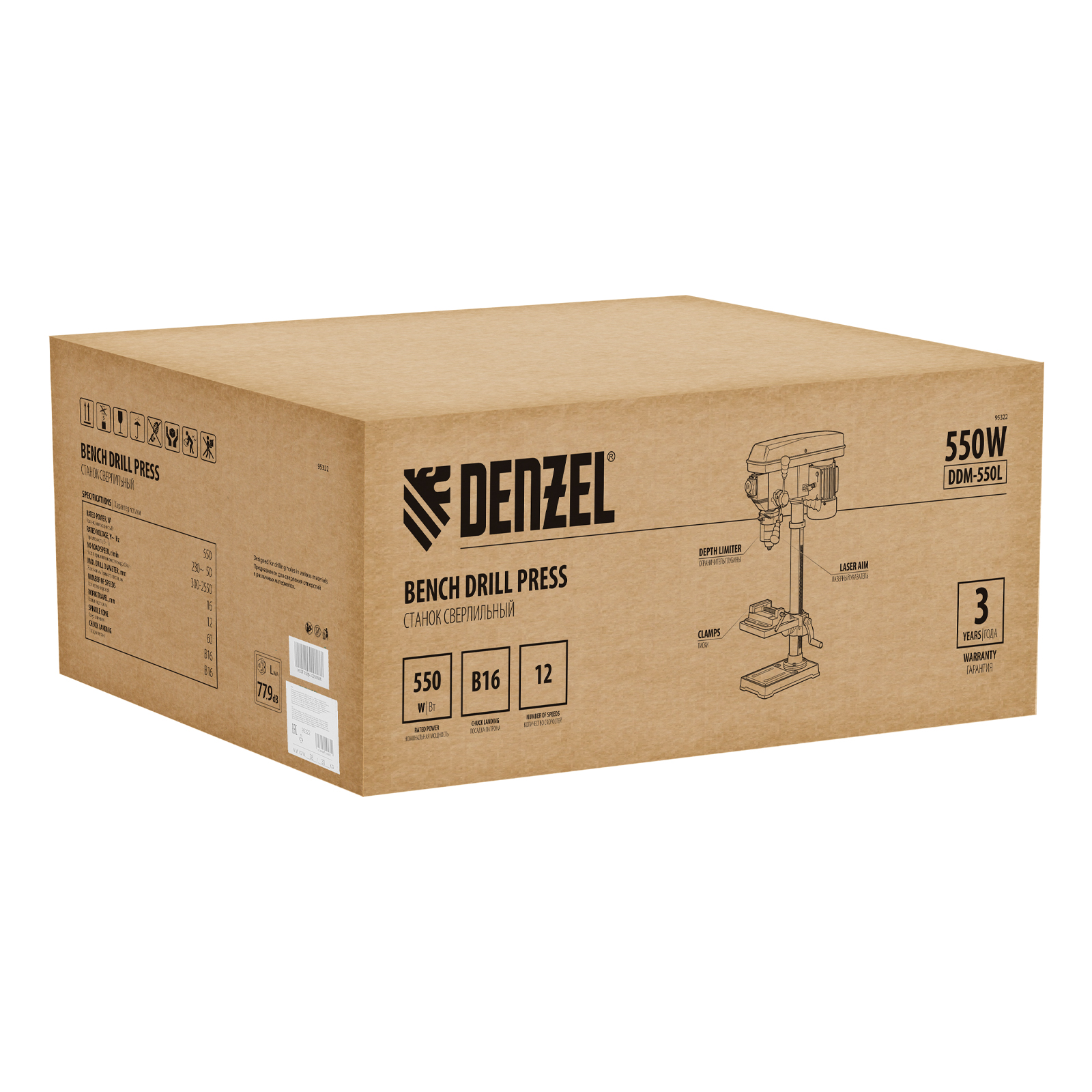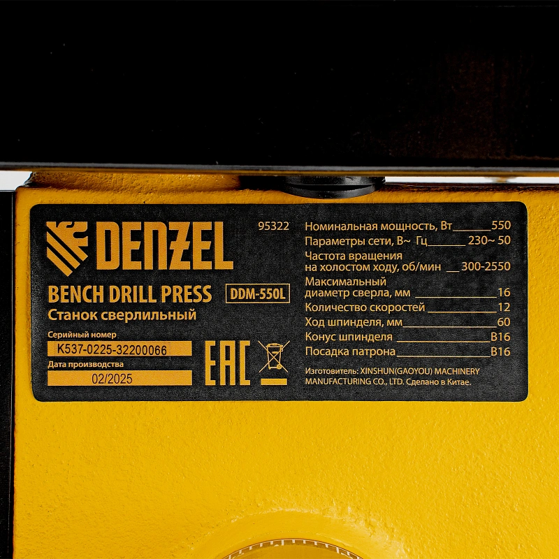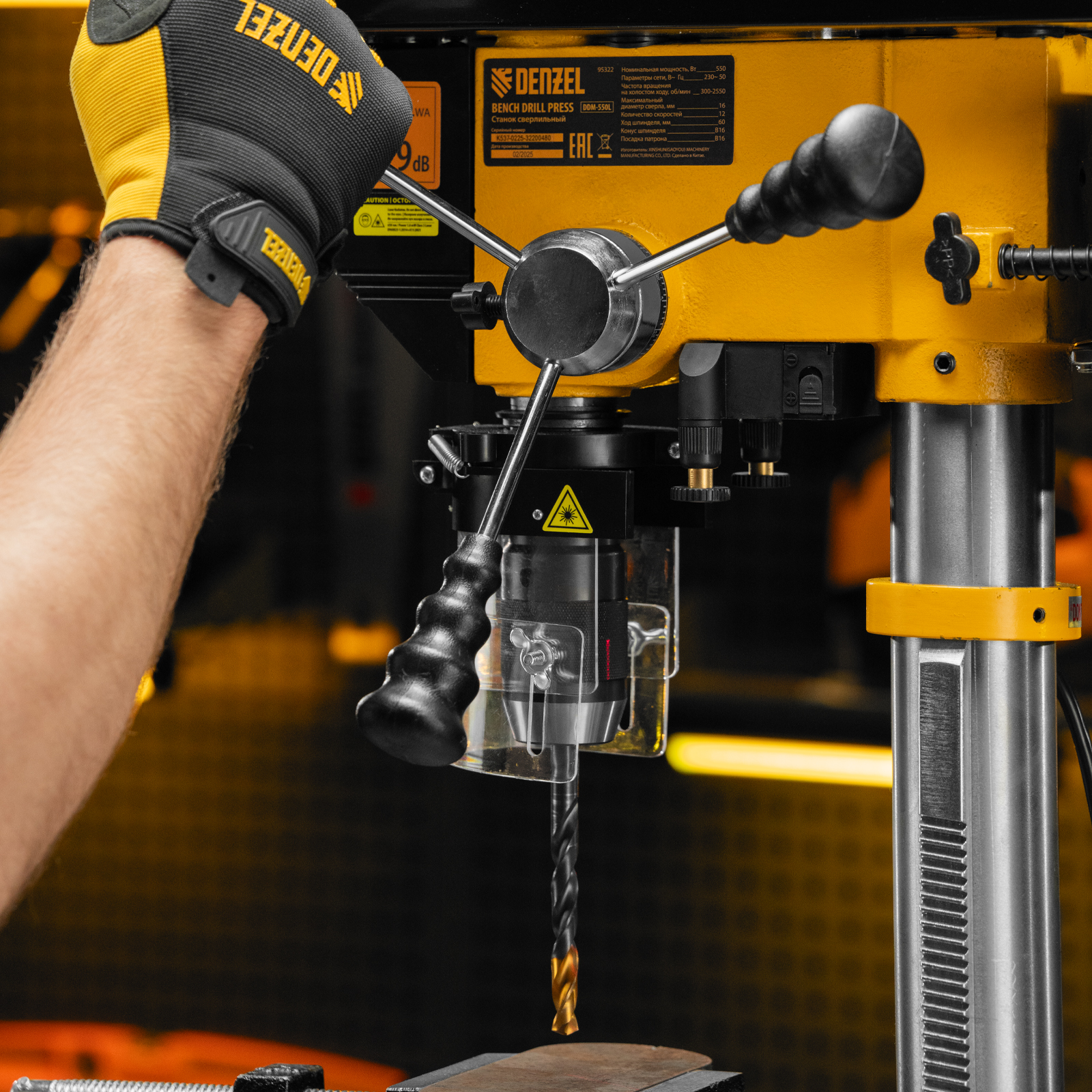Станок сверлильный DDM-550L, 550 Вт, 16 мм, 12 ск., лазер, настольный Denzel