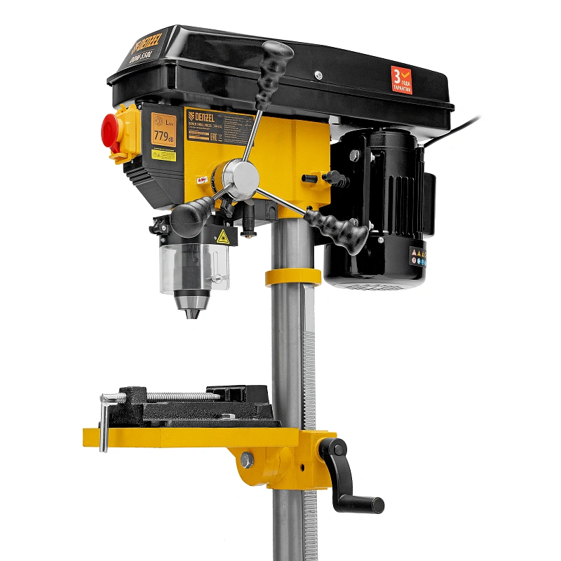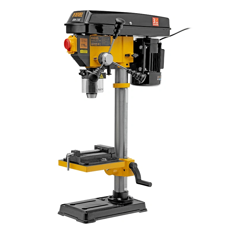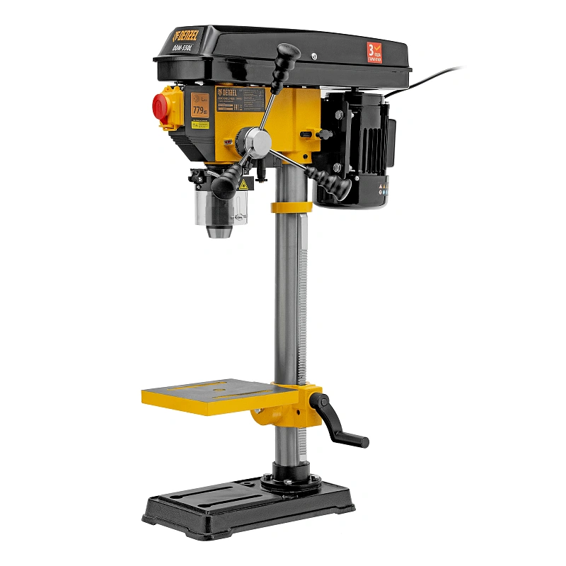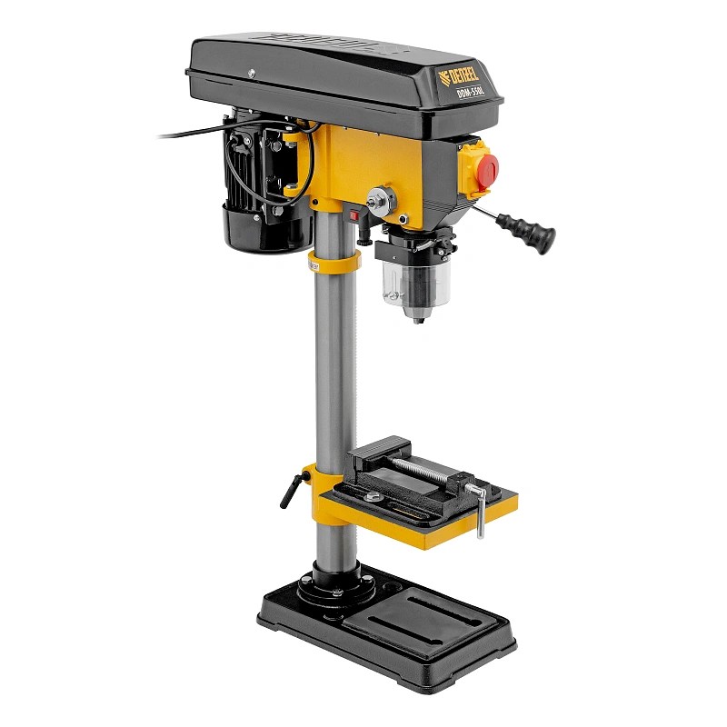 Настольный сверлильный станок Denzel DDM-550L 95322 мощностью 550 Вт, с лазером, совместим с оснасткой диаметром 1-16 мм и поддерживает 12 ступеней частоты вращения шпинделя. Применяется для получения отверстий в заготовках, а также для выполнения шлифовальных работ. Асинхронный двигатель обеспечивает повышенную частоту вращения шпинделя 300-2550 об/мин, что обеспечивает высокую эффективность обработки даже плотных материалов. Станок значительно упрощает выполнение различных ремонтных и монтажных работ в мастерской и гараже.