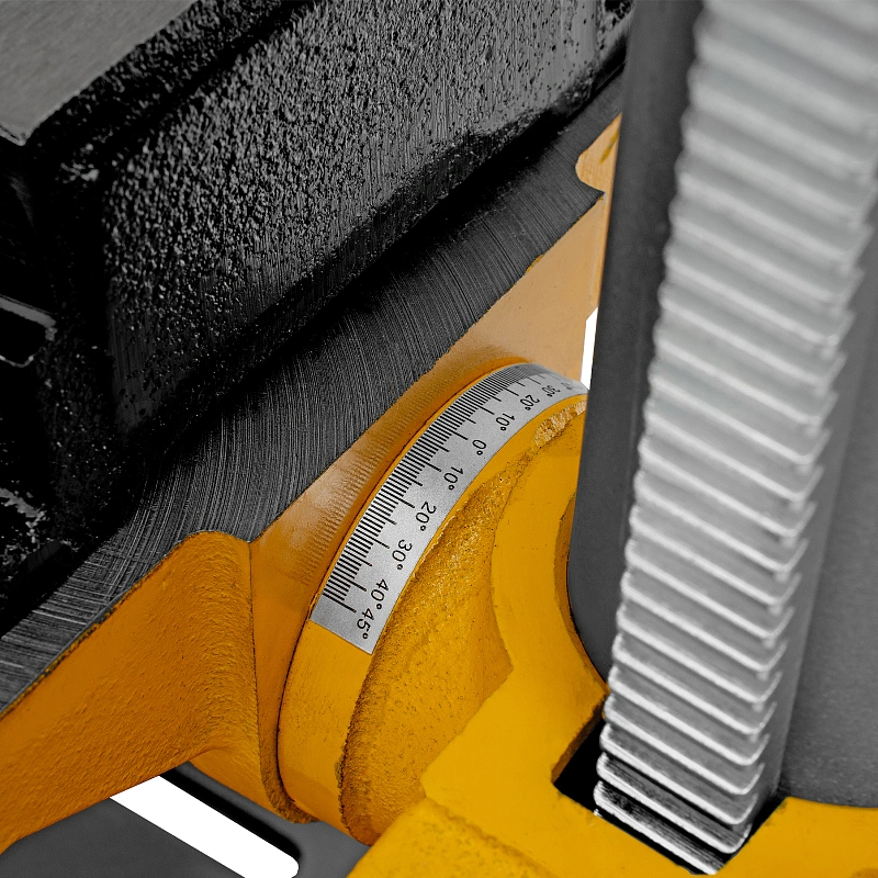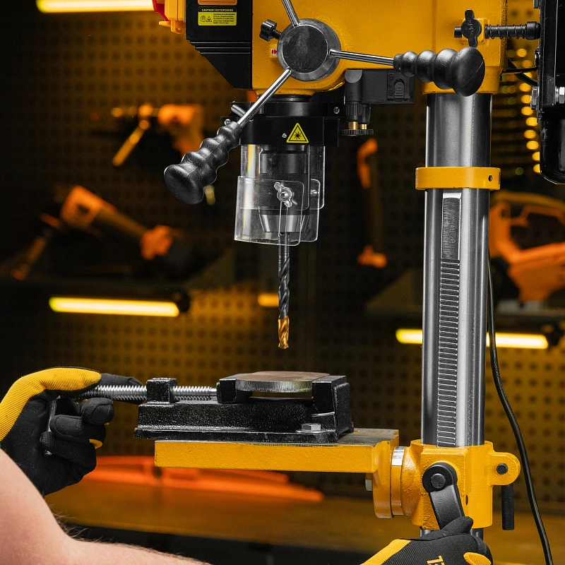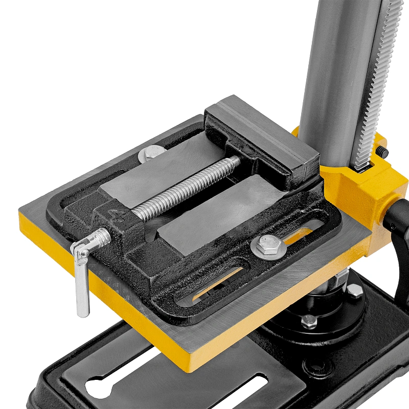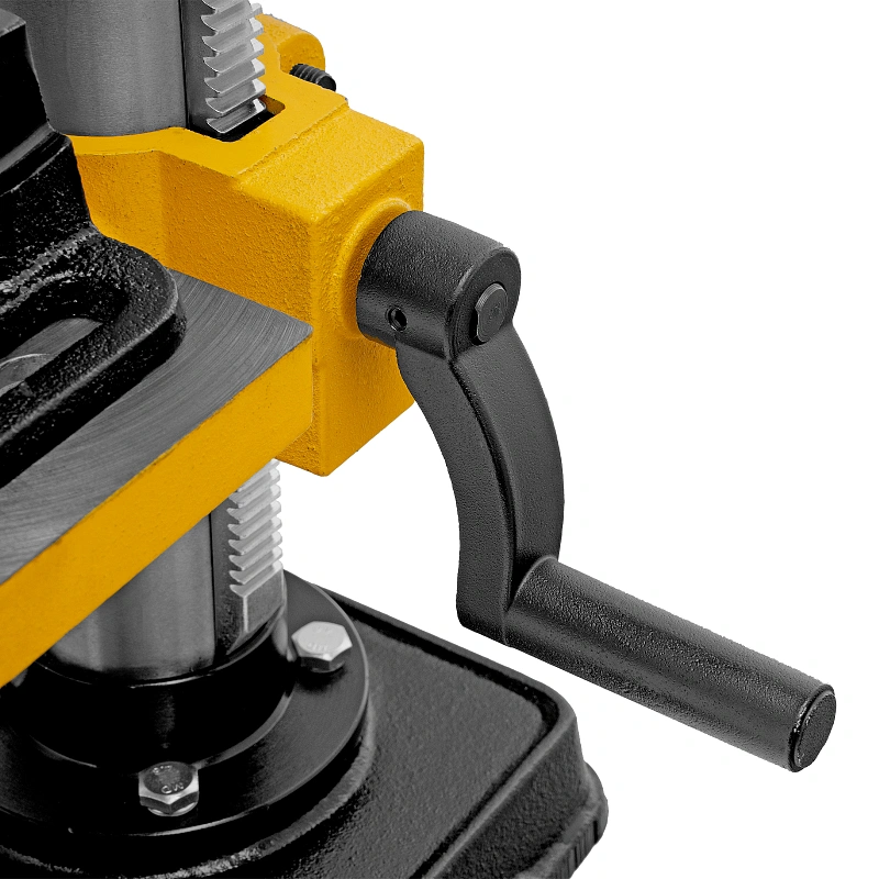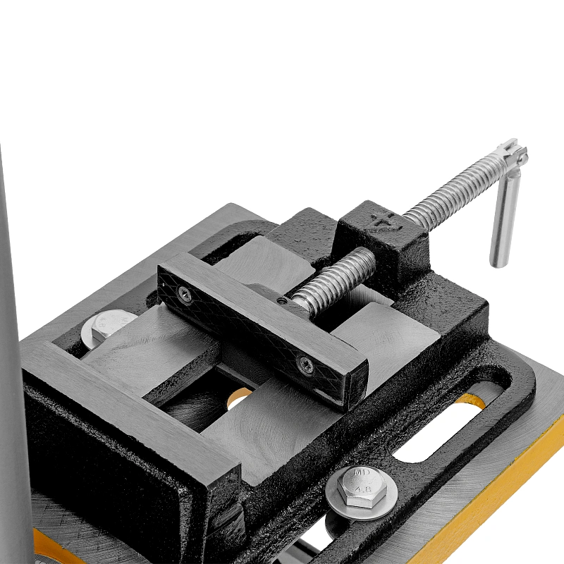 - Надежная фиксация заготовки — в конструкции предусмотрены тиски для зажима деталей.
