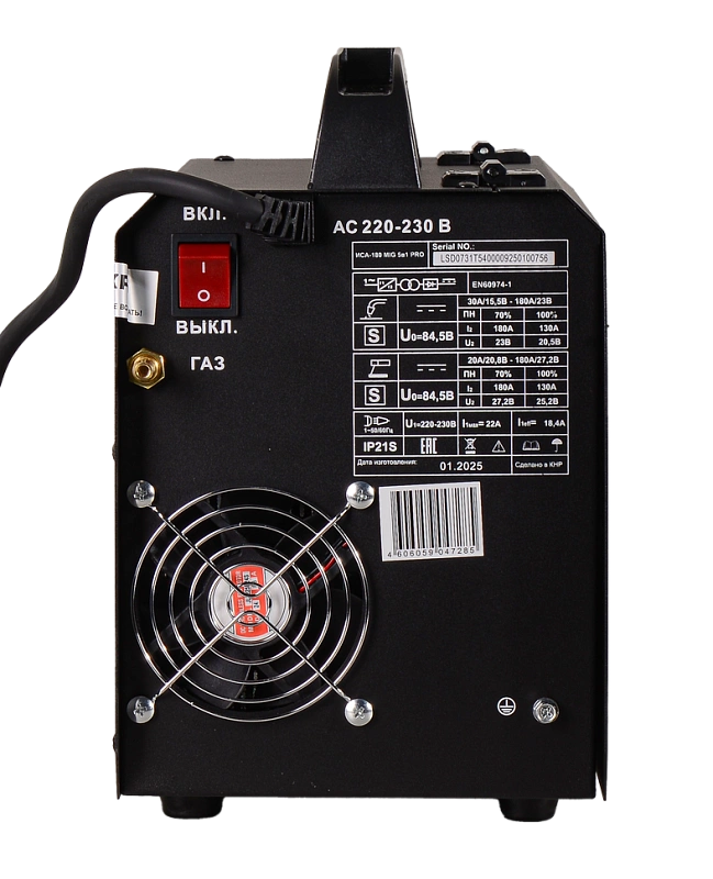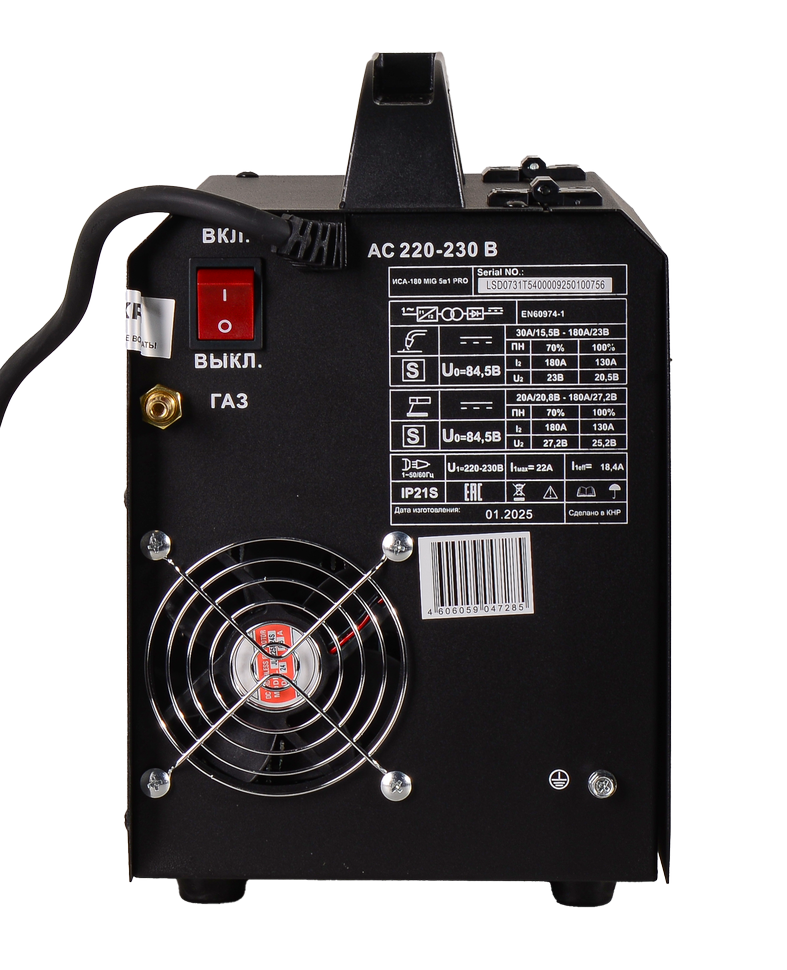 инвертор, MIG 5 в 1, 155 - 280В, 20 – 180 А, ПВ - 70%, Ø - 0,6/0,8 мм