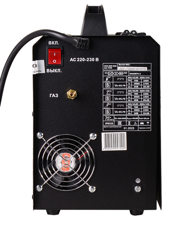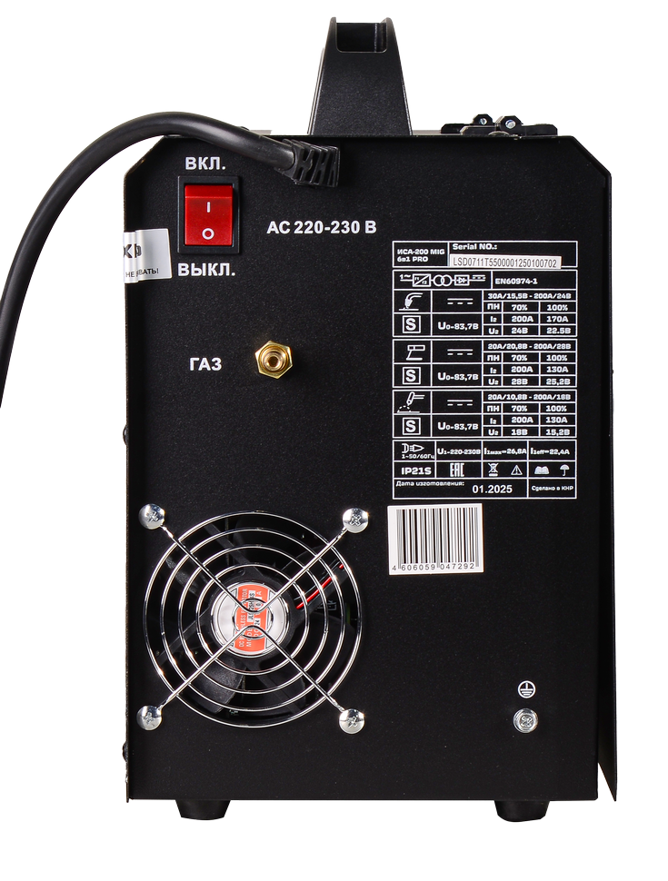 инвертор, MIG 6 в 1, 155 - 280В, 20 – 200 А, ПВ - 70%, Ø - 0,6/0,8/1,0 мм