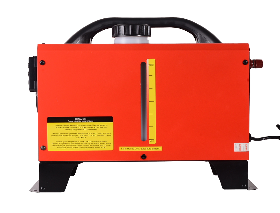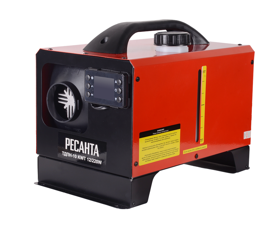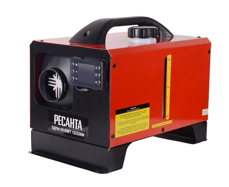 440 м³/ч, мощность тепловая – 10 кВт, расход топлива – 0.53 кг/ч, тип топлива – дизельное, бак – 5 л, вес – 9.7 кг